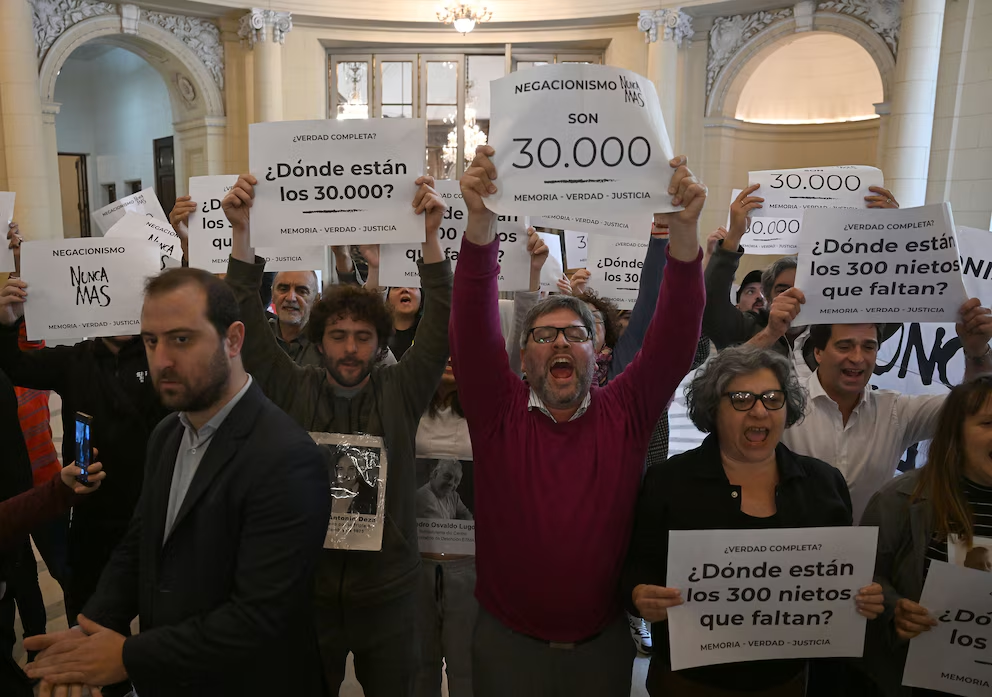 Según informó el sitio Infobae, antes del inicio del acto, un grupo unas 50 personas protestó frente al Salón Dorado de la Legislatura y repudió el homenaje a los soldados del Operativo Independencia. Los manifestantes elevaron pancartas que decían “negacionismo Nunca Más”, “¿dónde están los 30.000?" y “¿dónde están los 300 nietos que faltan". Todas los carteles tenían repetida la consigna “Memoria, verdad y justicia”.