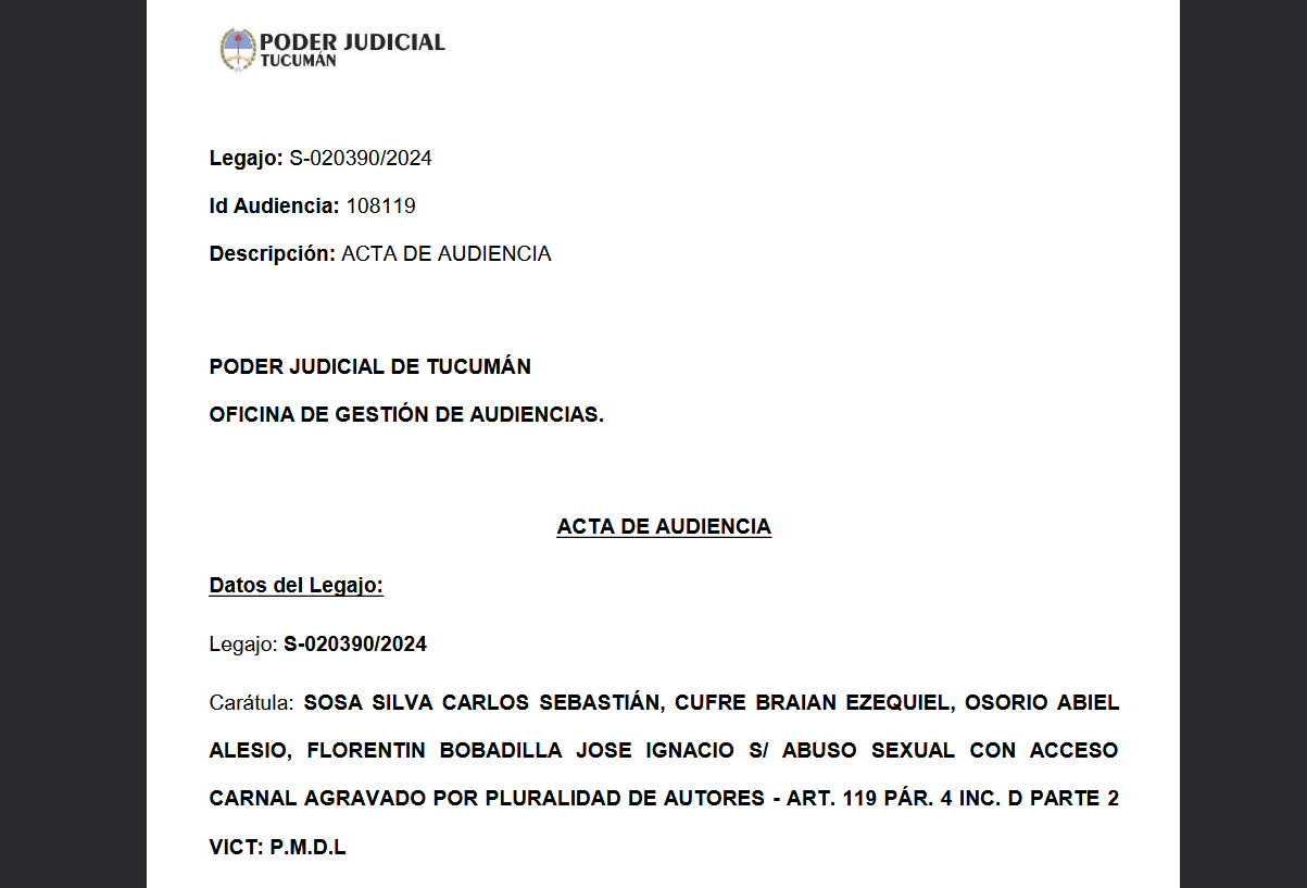 Acta oficial del Poder Judicial de Tucumán que certifica un escándalo total.