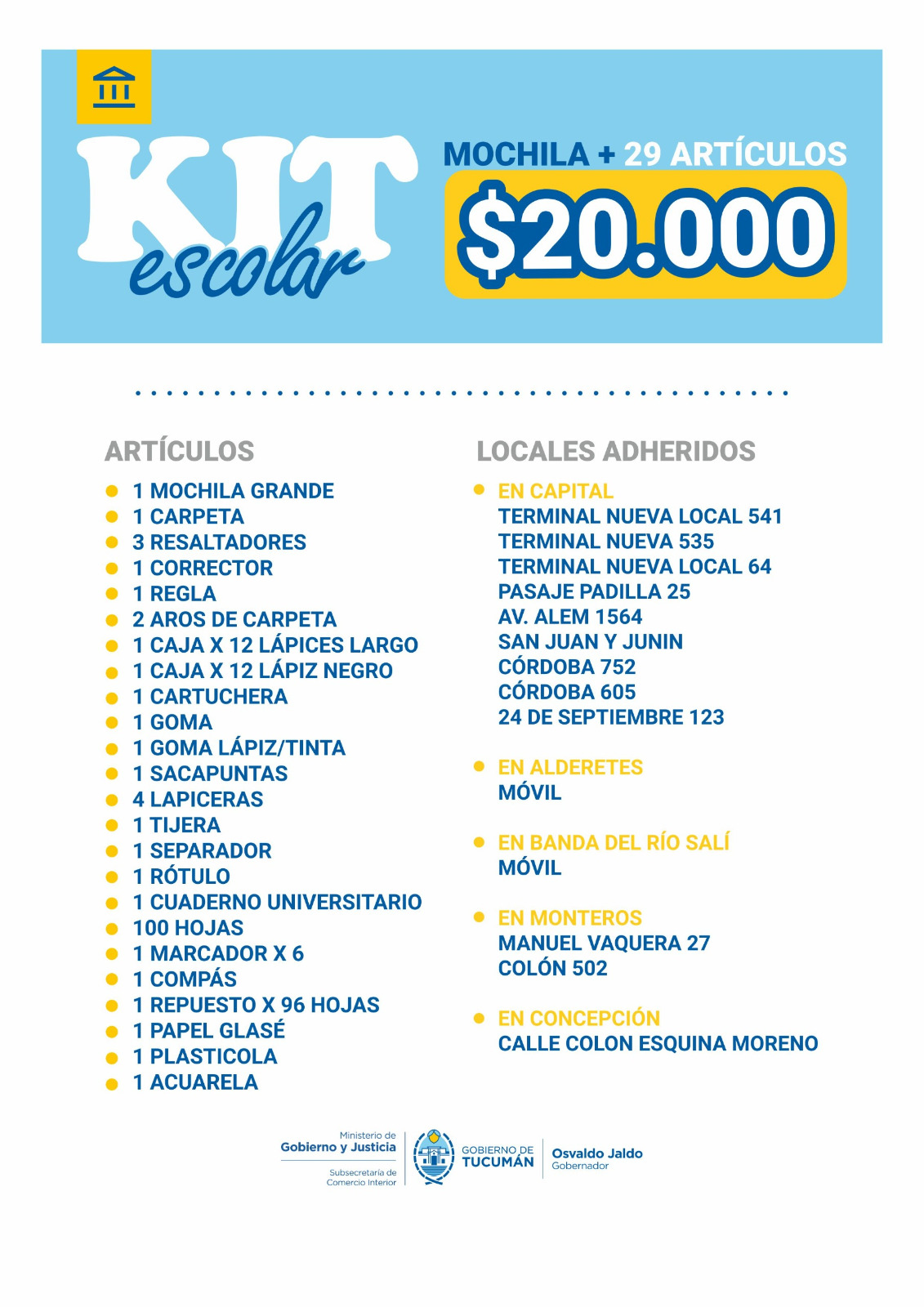 Dónde comprar el kit escolar de $20.000 lanzado por el Gobierno de Tucumán